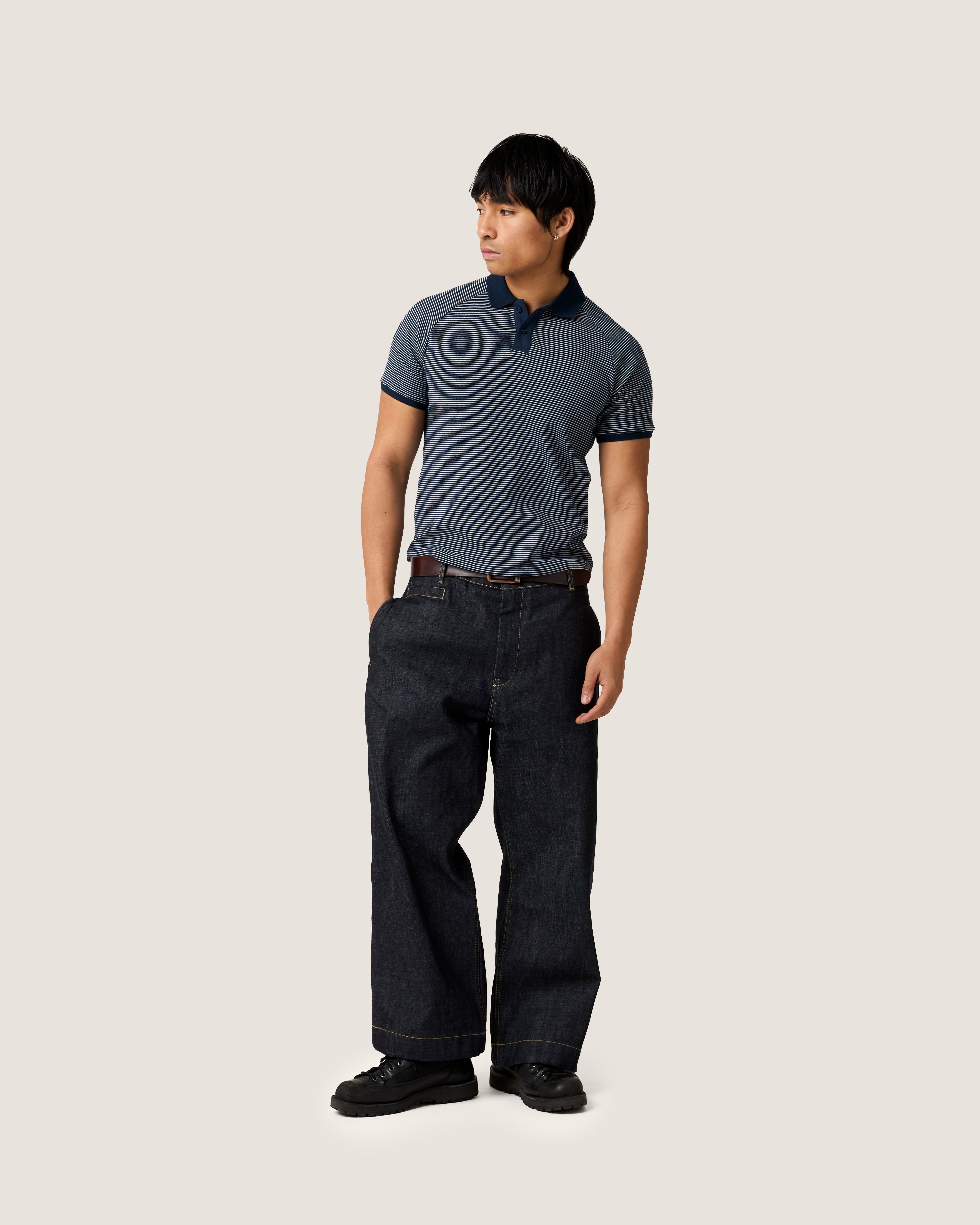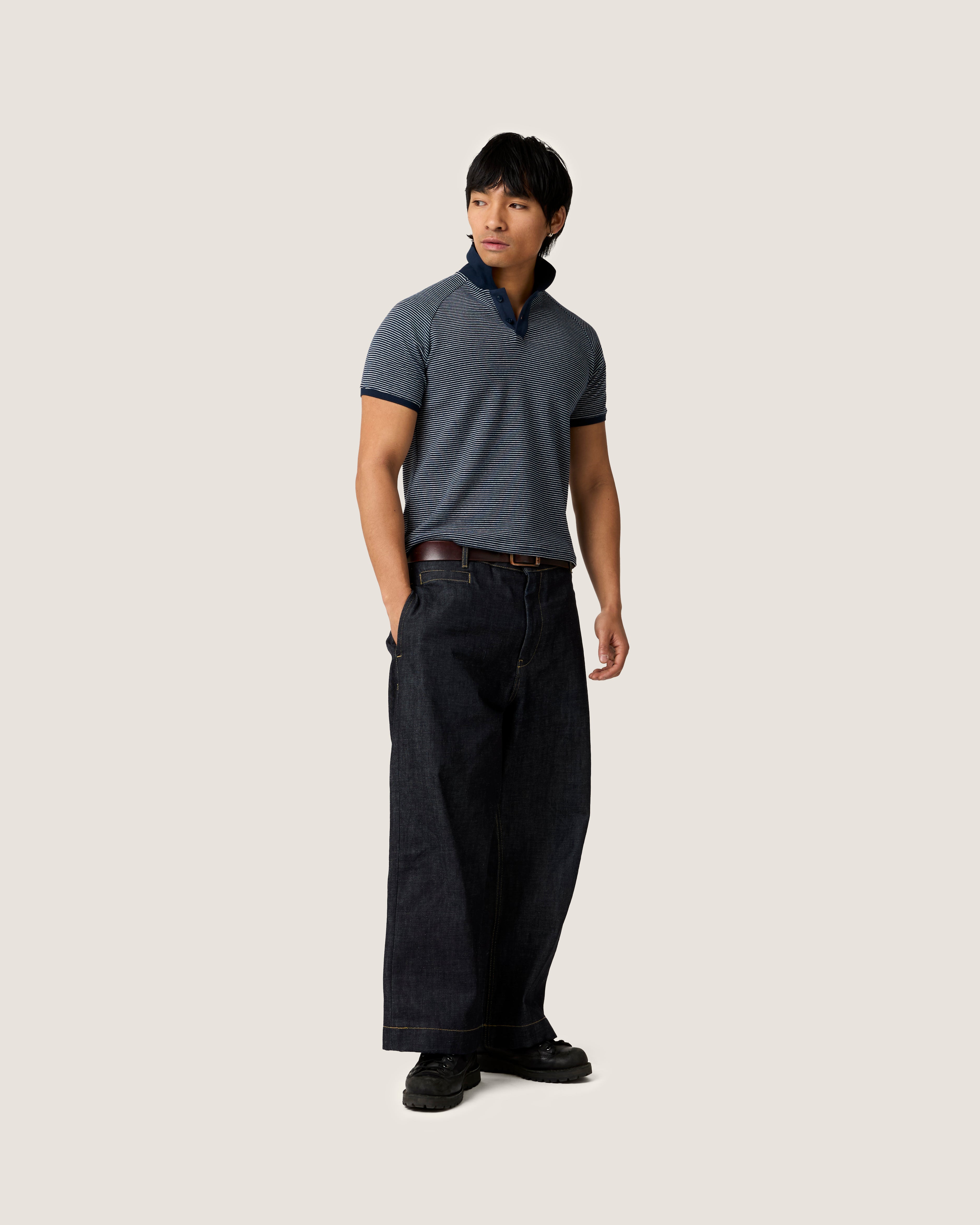 Cropped Striped Raglan Polo (Navy)
